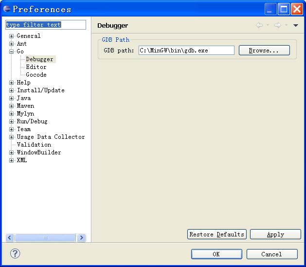 Eclipse编辑Go的主界面
