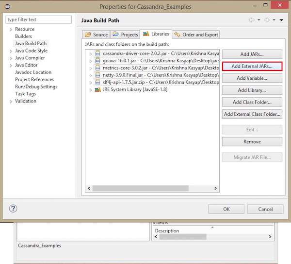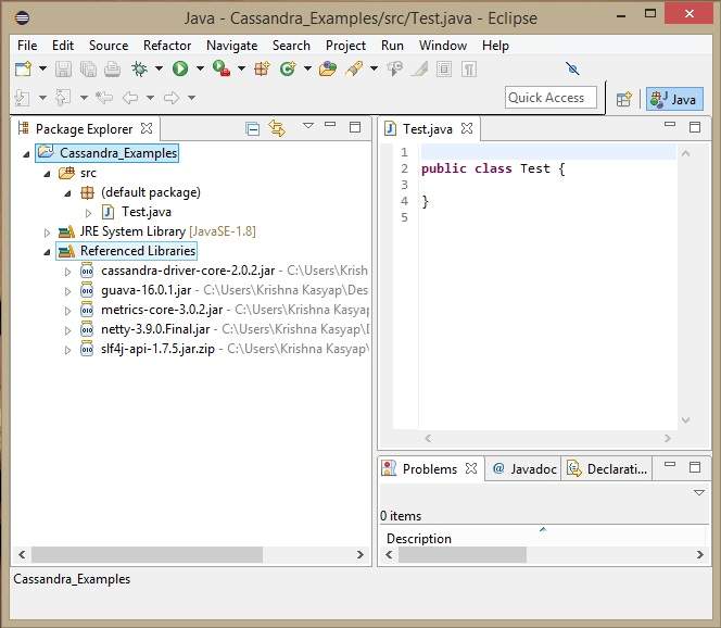 打开Eclipse并创建一个名为Cassandra Examples的新项目。