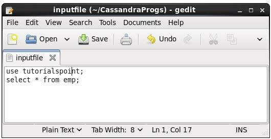 cqlsh:tutorialspoint> source '/home/hadoop/CassandraProgs/inputfile';