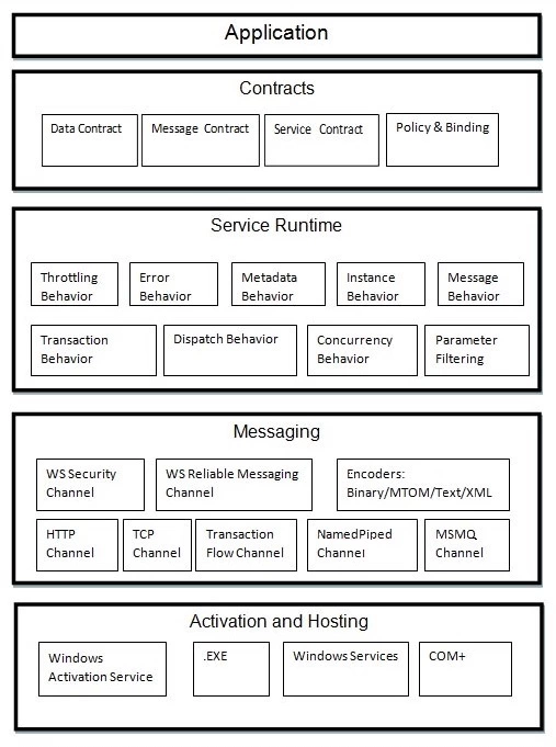 WCF是一个分层架构,为开发各种分布式应用的充分支持。该体系结构在下面将详细说明。