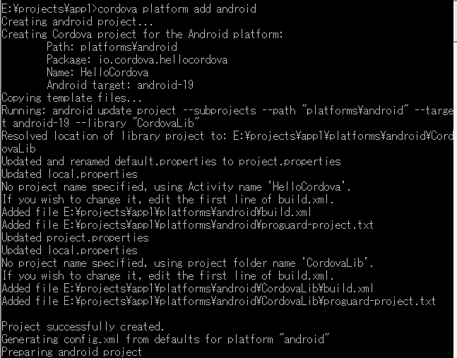 ***Cordova 会调用 Android SDK 在 app1\platforms\android 中创建一个完整的 Android 应用工程。