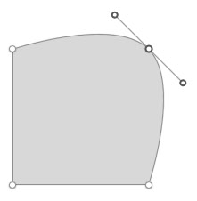 如果你想将一条直线变为曲线,先双击一个点,它的两侧会出现两个新的小手柄,他们分别控制这这一点两边线条的弯曲程度。你可以把这些小手柄理解为他们把线条朝自己的方向拉伸。