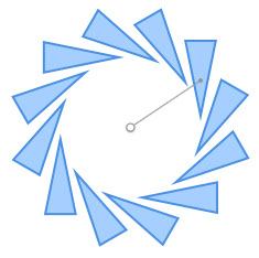 这个工具能复制选中的图形,并按照一个特定的中心点旋转。例如绘制一朵花,你可以先画出一片花瓣,然后复制12片花瓣并旋转,即可得到一朵花的图案。