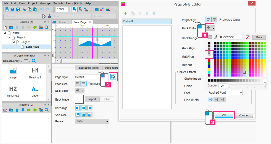 预览你的原型。Sitemap 的变化反映在原型的 Sitemap 上。注意你所有的页面上的背景颜色已经改变,因为我们在页面样式编辑器改变了默认风格。图像部件在“最后一页”。