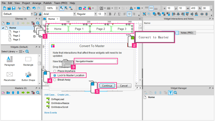 添加,编辑和设计小部件。然后,把它们(部件)转换到一个 Master, 这样你就能集中管理和重用整个设计。