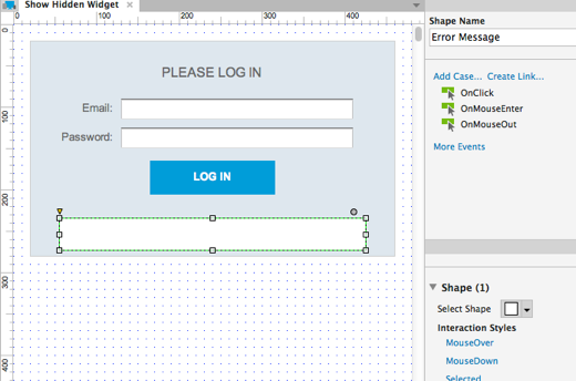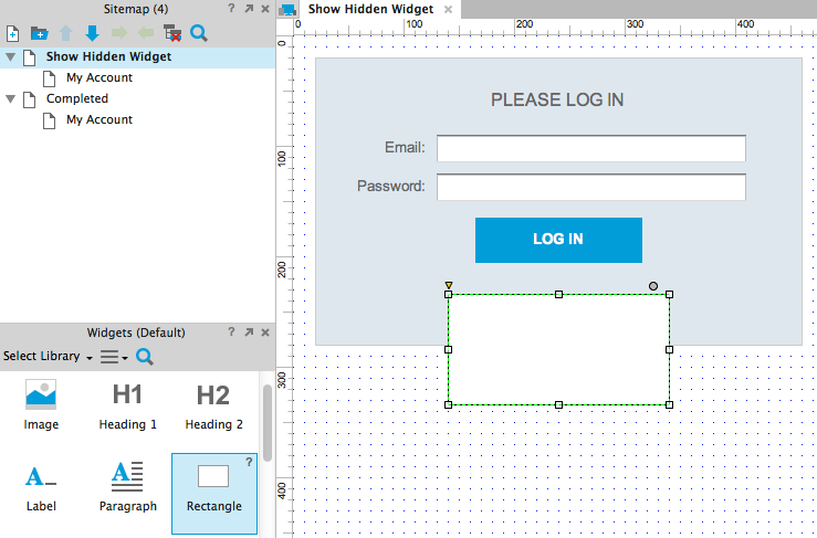 从 Widgets 面板拖动一个矩形部件到设计区域,让其在 Login 按钮下面。