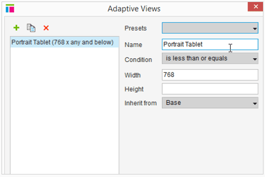 在自适应视图对话框中,单击绿色加号创建一个视图。