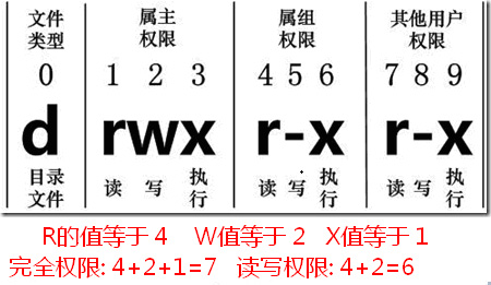 第4-6位确定属组(所有者的同组用户)拥有该文件的权限,第7-9位确定其他用户拥有该文件的权限。其中,第1、4、7位表示读权限,如果用"r"字符表示,则有读权限,如果用"-"字符表示,则没有读权限;