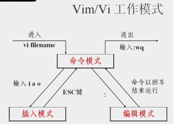 基本上 vi/vim 共分为三种模式,分别是一般模式、编辑模式与指令列命令模式。 这三种模式的作用分别是: