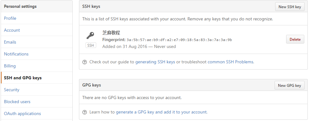 由于你的本地Git仓库和GitHub仓库之间的传输是通过SSH加密的,所以我们需要配置验证信息: