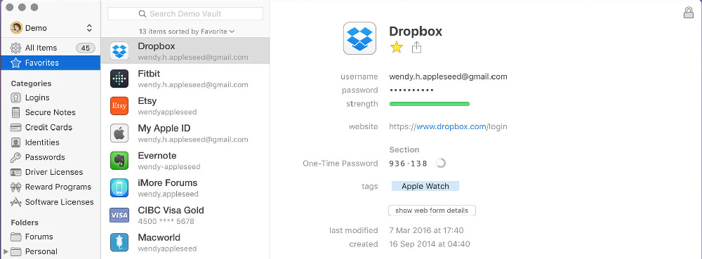1Password的所有数据都是经过高强度的加密后保存在你的电脑本地硬盘,基本上你不必担心你的密码库在网上被人窃取或破解。但是,提醒各位,不要将特别重要的信息直接放入1Password,毕竟一旦丢失损失惨重。