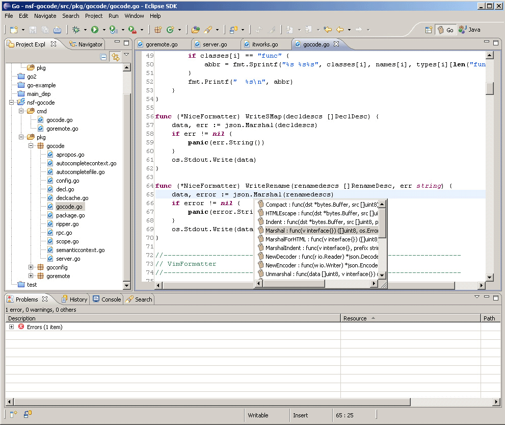 Eclipse编辑Go的主界面