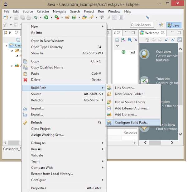 打开Eclipse并创建一个名为Cassandra Examples的新项目。