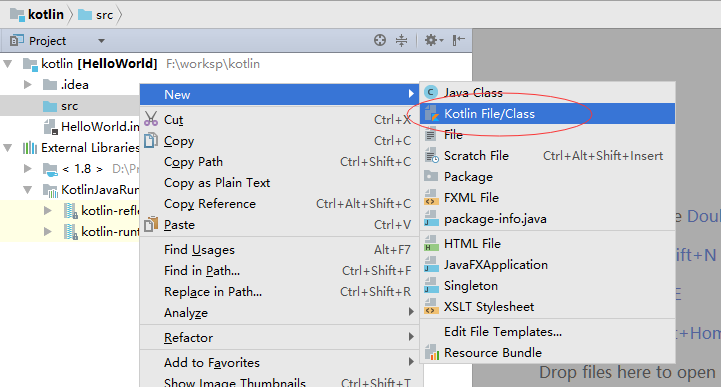 在src文件夹下创建一个新的Kotlin文件,将它命名为:app.kt。