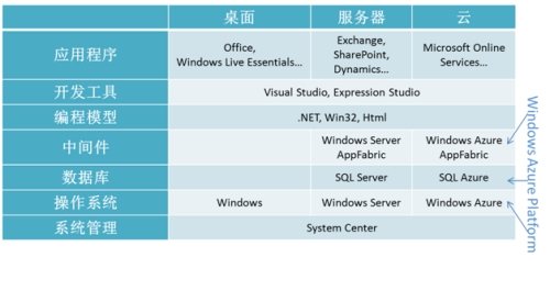 首先我们来看一看Windows Azure平台在微软产品大家族中的定位,并且把它和大家所熟悉的产品作个比较。