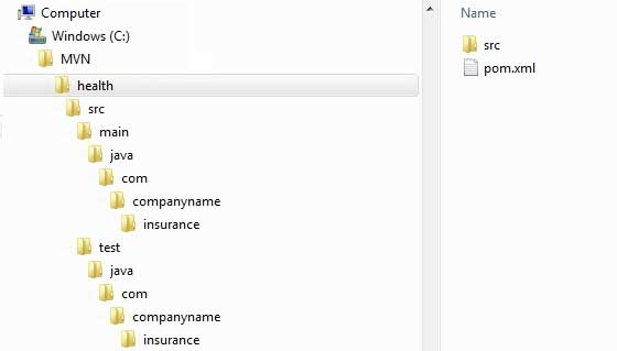 路径:C:\ > MVN > health > src > main > java > com > companyname > insurance > App.java