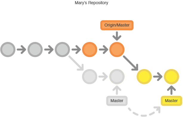 Git 命令我们就可以模拟出传统 Subversion 开发环境。对于要从 SVN 迁移过来的团队来说这太好了,但没有发挥出 Git 分布式本质的优势。