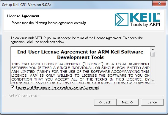 2) 点击“Next”按钮,弹出“License Agreement”对话框,如图1-2所示。这里显示的是安装许可协议,需要在“I agree to all the terms of the preceding License Agreement”打勾。