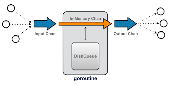 通道是一个有点复杂,但共享着 go-chan 单一输入和输出(抽象出来的事实是,在内部,消息可能会在内存或磁盘上):