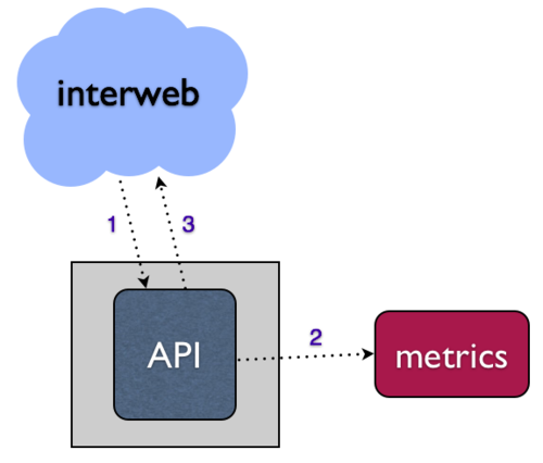 对于 Web 服务,多数指标是由 HTTP 请求事件产生的,比如 API。本地的方法可能会结构化这个异步操作,通过 API 请求直接写到你的指标系统。