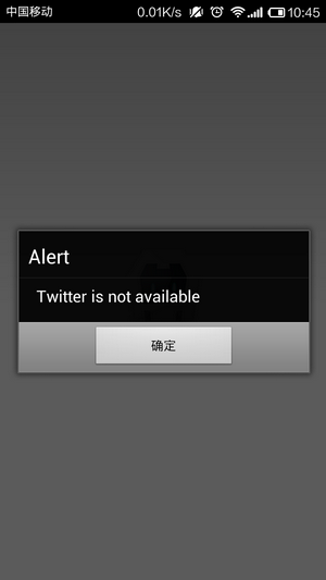alert('Twitter is not available');