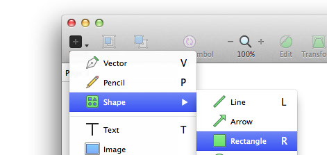 添加新图层是非常容易的,但我们同时提供了几个隐藏快捷键来帮助你方便的绘制。比如说你可以按住 shift 键来绘制等边图形;按住 option 键来从中心绘制图形,而不是从左上角绘制。