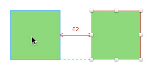 当你按住键盘上的 option 键,Sketch 会帮你显示出你已选中的图层和你的鼠标现在所悬浮的图层之间的距离,一个简单的图例便能说明。