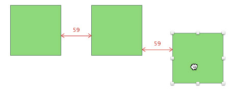 同样的,在移动一个对象时,移动到和另外两个对象的距离相等,Sketch 也会给你提示。