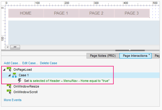 就像我们为 Home 页面所做的,通过相同的菜单为第一到三页面添加一个 OnPageLoad 事例到它们的 selected style。例如,页面 1 的 OnPageLoad 事例,设置 Nav – Page 1 到它的 selected style ,然后为 Page 2 和 Page 3 使用相同的操作。