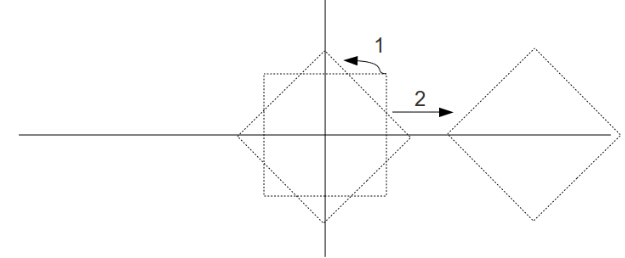 现在我们再看看先平移再旋转发生了什么: