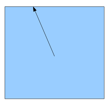 为了从立方体纹理中进行采样,我们需要使用 3D 纹理坐标而不是我们之前用到的 2D 纹理坐标,纹理采样器将 3D 纹理坐标看做一个向量,它会先确定我们需要的纹素是存在于立方体的哪一个面上,之后再从这个面上得到纹素的数据,这一个过程可以用下面这个图片表示(从上往下看立方体)。