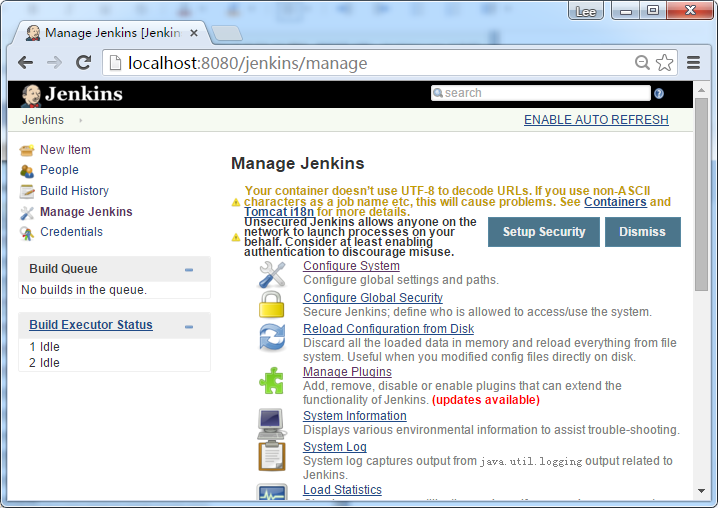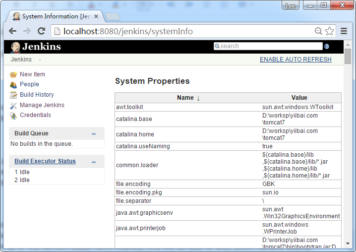 该屏幕显示所有当前Java系统性能和系统环境变量的列表。在这里,人们可以准确地检查Jenkins 在Java的哪个版本正在运行,在哪些用户下运行等等。