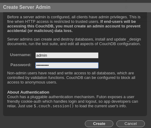 为CouchDB创建管理员帐户是一个很好的做法,以防止意外或未经授权的数据丢失。