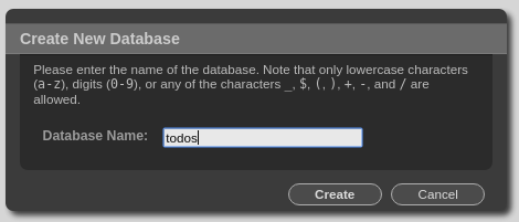输入数据库的名称:todos,然后单击创建按钮。