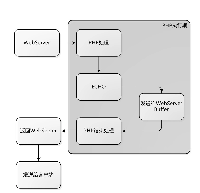 假设, 我们的PHP要输出100K的数据, 那么, 我们Apache的的输出缓存就必须大于100K, 否则当Apache的输出缓存满了以后, 就会真正的发送给客户端, 而这个过程中, 当时执行的ECHO就会阻塞等待.