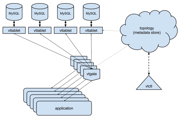 Vitess是Youtube开源的数据库扩展及高可用方案,已经用于生产环境,功能强大,但是构架复杂,部署及运维成本较高,构架图: