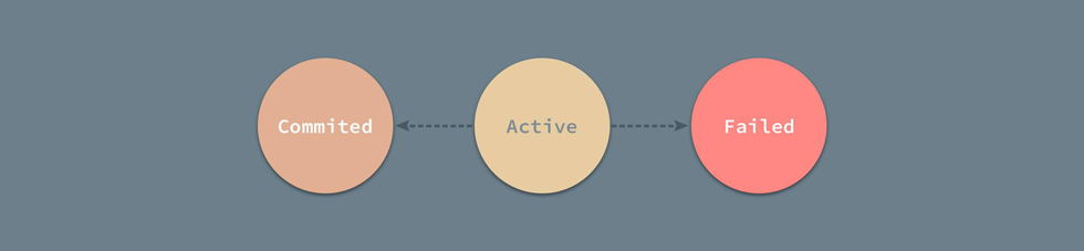 因为事务具有原子性,所以从远处看的话,事务就是密不可分的一个整体,事务的状态也只有三种:Active、Commited 和 Failed,事务要不就在执行中,要不然就是成功或者失败的状态: