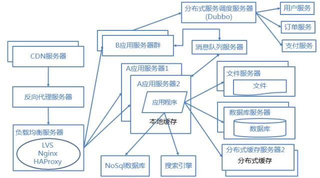 应用服务器前面部署负载均衡服务器调度用户请求,根据分发策略将请求分发到多个应用服务器节点。