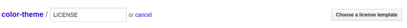 如果此时没有选择,后来可以通过 web 界面 create new file,输入 LICENSE,点击右侧的 choose a license template 来添加