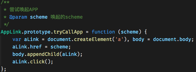 关于Scheme唤起,之前有很多方案,比如:使用iframe、a标签点击、window.location...经测试,只要使用a标签点击,这样兼容性最好,代码大约长这样: