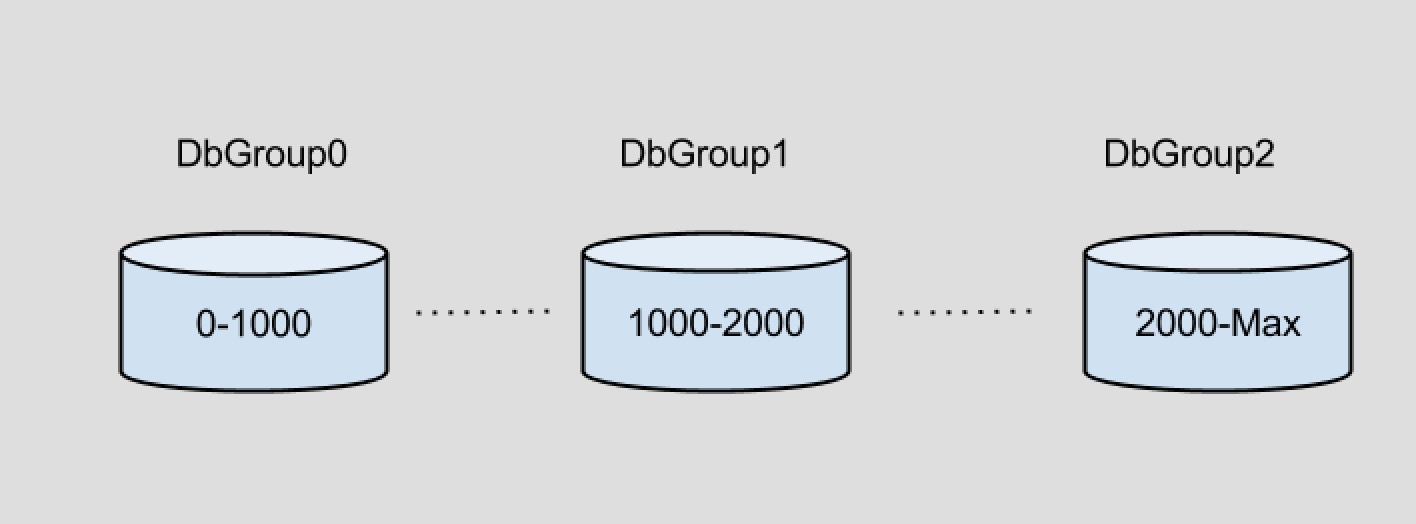 如上图中, shard Key范围在0-1000的数据存放在DbGroup0中, 范围在1000-2000的数据存放在DbGroup1中, 2000-MaxInt 的数据存放在DbGroup2 中. 这些范围的大小不需要相同.比如id为shard key的话, sql: "select * from test where id = 1500;", Atlas会将此语句发往DbGroup1. 暂时Atlas的range是静态的, 不支持动态的增加范围.