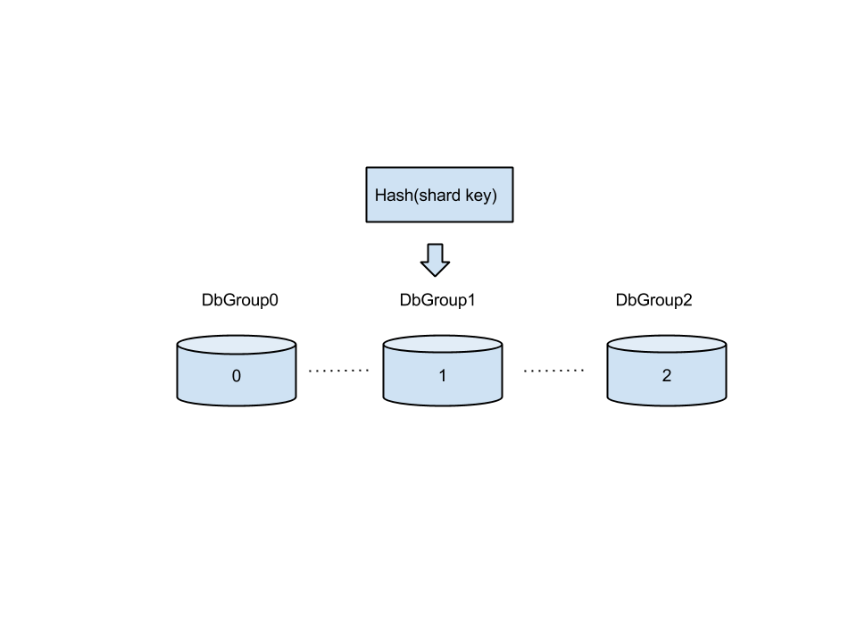 hash跟range方式是恰好相反的, hash 可以应对数据递增的情景, 即使是在递增的情况下, sharding的数据也是均匀分布在各个数据组内的, 但是其缺点就是对于范围的查询通常都需要查询所有的dbgroup, 网络的消耗比较大.